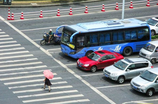 “在杭州的斑马线车道上,写着硕大的“车让人”三个字,提醒机动车减速。有些人流量大的道路,还竖起电子显示牌,提示“车让人”,在驾考中增设通过人行横道项目。目前,杭州市区主要道路上斑马线前的礼让率已经达到93.91%。”——《南京日报》9月15日报道